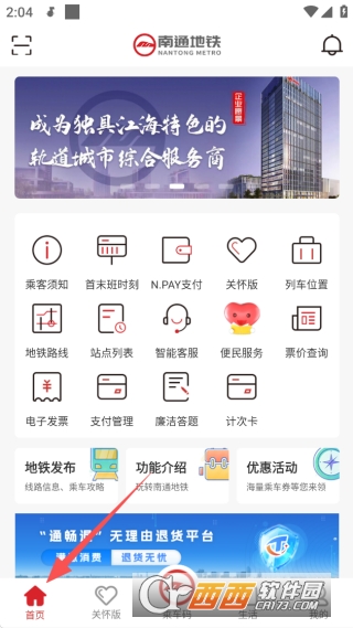 1、在南通地铁APP首页点击“乘车码”;