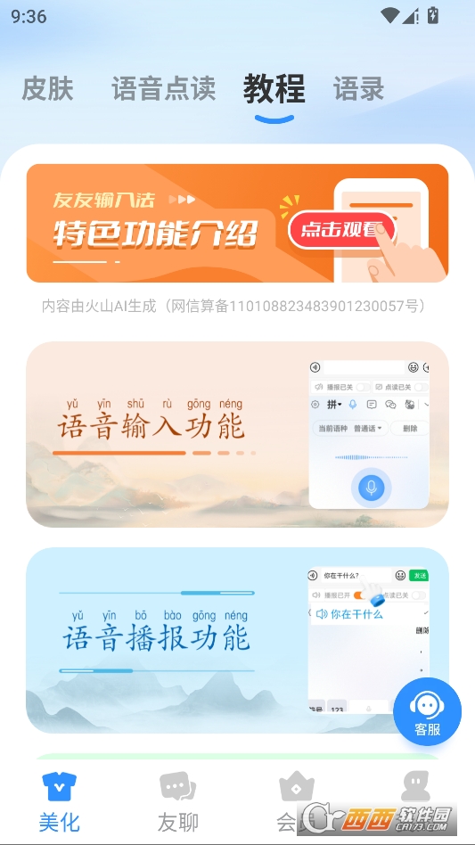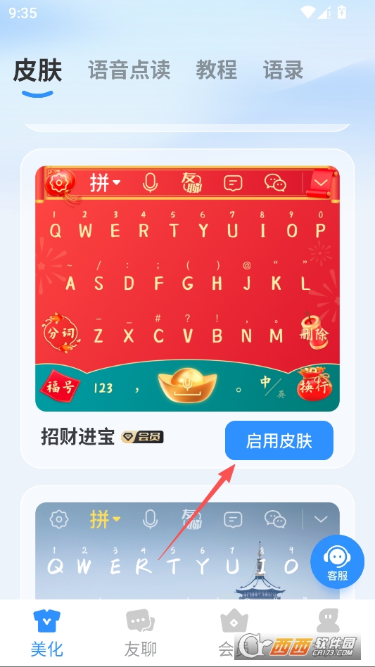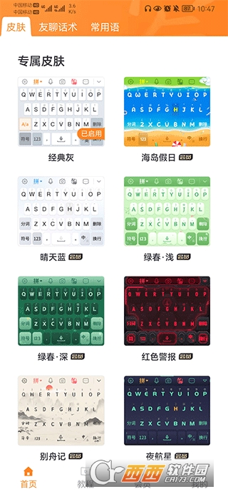 五、切换皮肤:返回友友输入法app中,在首页界面中悬着并启用皮肤即可