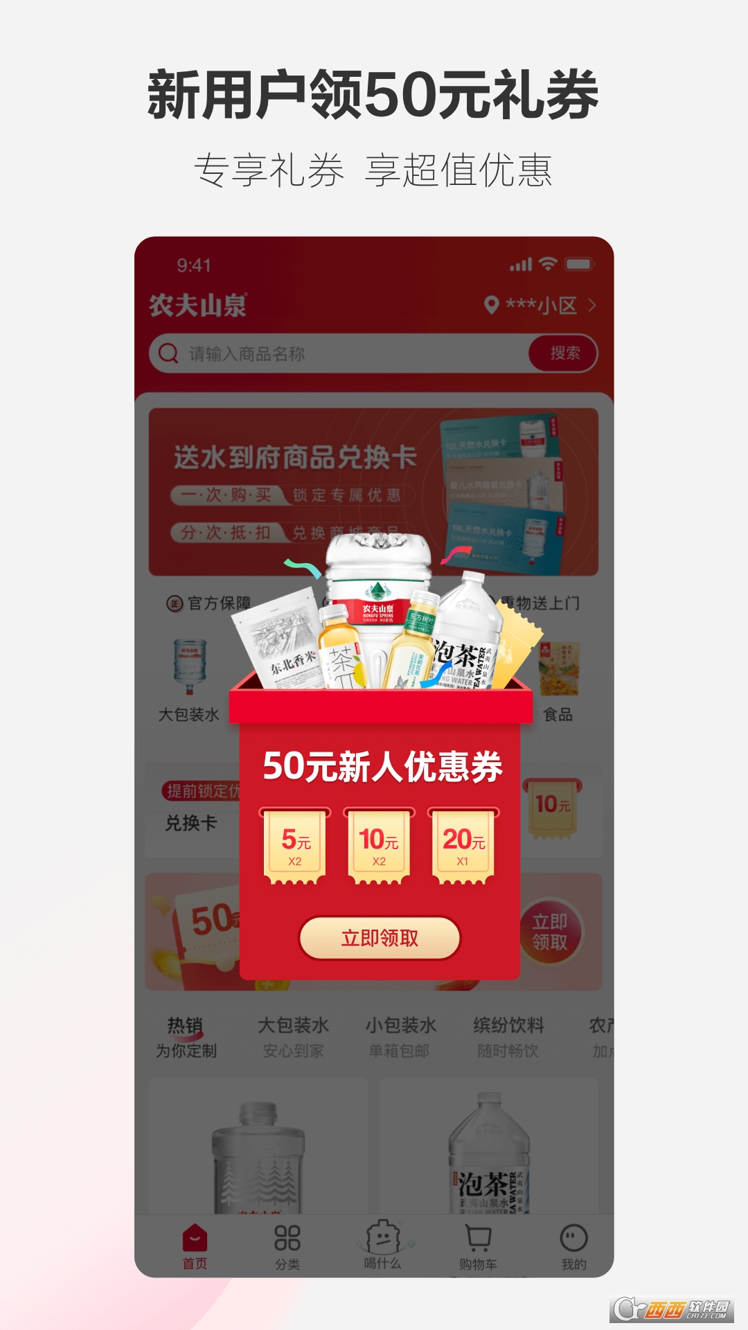 5. 官方专属福利推送,定期发布订水优惠活动,比如满减券、折扣券、买多赠多等。新用户注册还能领取专属新人礼包,降低用水成本。同时会推送新品上市、水源地介绍等资讯,让用户及时了解品牌动态。