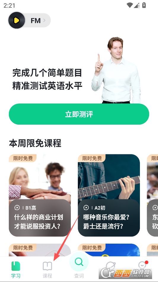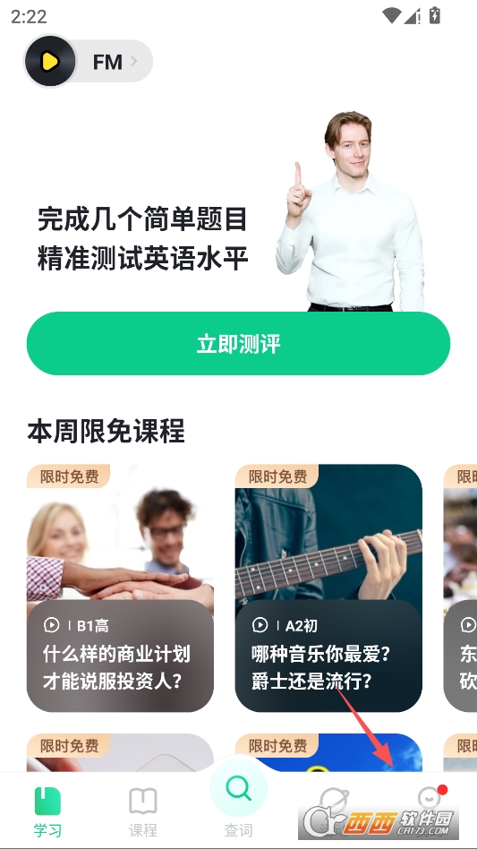 首次打开APP后,建议先完成首页的水平测试。测试涵盖词汇、听力、口语等多个维度,系统会根据测试结果精准评估你的英语水平,然后自动生成专属学习计划,跟着计划学习即可快速上手。