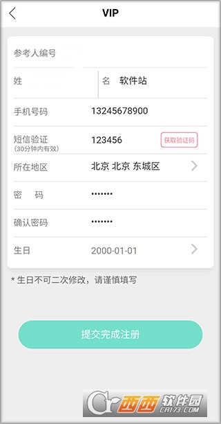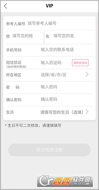 4、完成后就会进入到【vip资料填写】页面,除了生日信息,其他都为必填项。