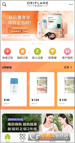 全新移动欧瑞莲:首页、分类、购物车、我的页面
