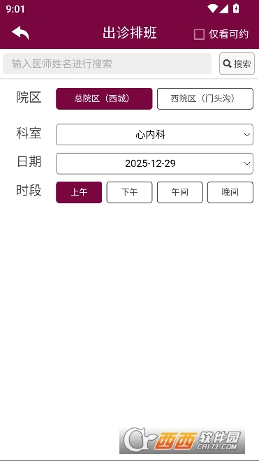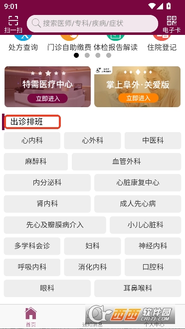掌上阜外医院app2026最新客户端是一款中国医学科学院阜外医院专属的线上服务平台,用户能通过软件进行预约挂号,检查预约,复诊续方,在线问诊,还能随时查看诊疗资料,院内到货,住院登记,门诊自助缴费,非常方便且高效,能够根据诊室分类进行筛选,查看当天可约,帮助用户提前预约就诊 。