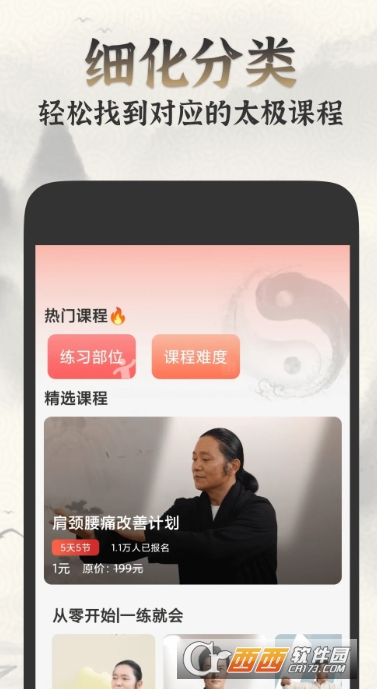 对症专练专题课程:聚焦现代人常见的健康问题,推出肩颈腰痛改善、养精固元、强身健体等针对性课程,课程设计围绕具体痛点展开,通过科学的太极功法训练,实现精准养生,帮助用户缓解身体不适。