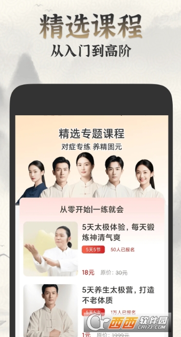 名师在线答疑授课:邀请全国武术冠军等专业名师亲自授课,课程中拆解动作细节、讲解养生原理,同时提供实时在线答疑服务,手把手带领用户攻克学习难点,从入门到精通全程保驾护航。