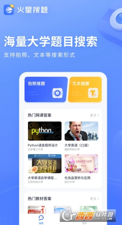 1、下载安装并打开火星搜题app,进入首界面,可以看到题库非常丰富;