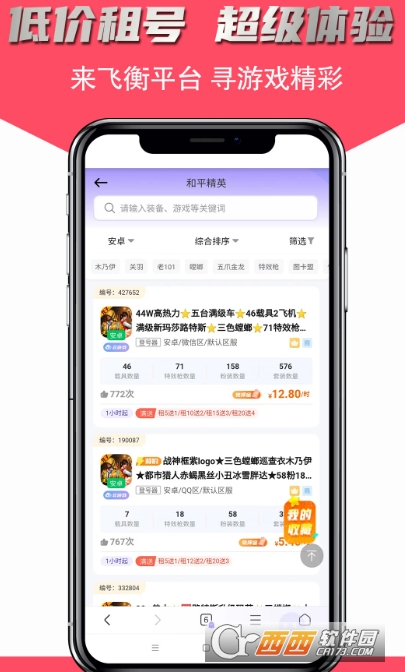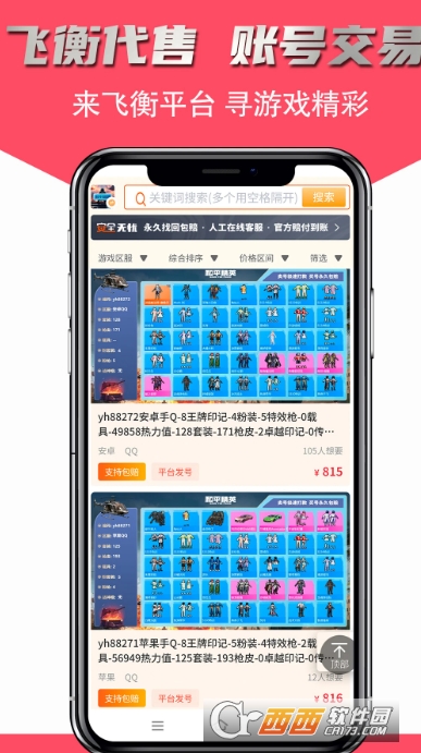 飞衡代售app官方客户端是一款专业的游戏账号资源交易平台,涵盖王者荣耀,和平精英,三角洲行动,英雄联盟等热门手游,端游,为用户提供丰富的账号资源选择。每日上新精选账号,还能根据类型,区服,价格等条件进行筛选排序,点击感兴趣的商品就能在线咨询下单购买,还提供闲置账号快速出售,非常方便。