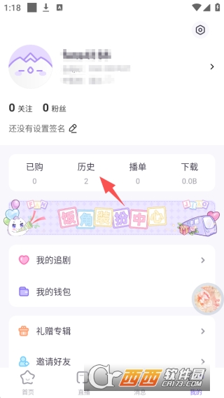 2、在我的栏目中间可以看到“历史”,点击进入查看。