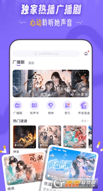 女性向内容与主播资源极为丰富,涵盖甜宠、悬疑、古风、职场等多种风格,从热门 IP 改编广播剧到原创漫画持续上新,形成 “听觉 + 视觉” 的双重内容矩阵,打造一站式女性兴趣聚合平台。