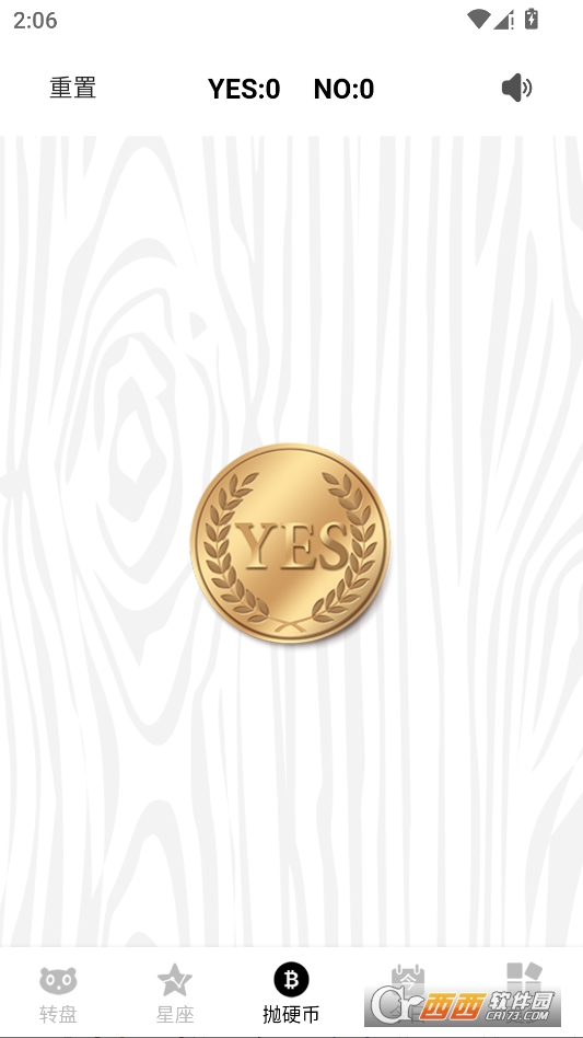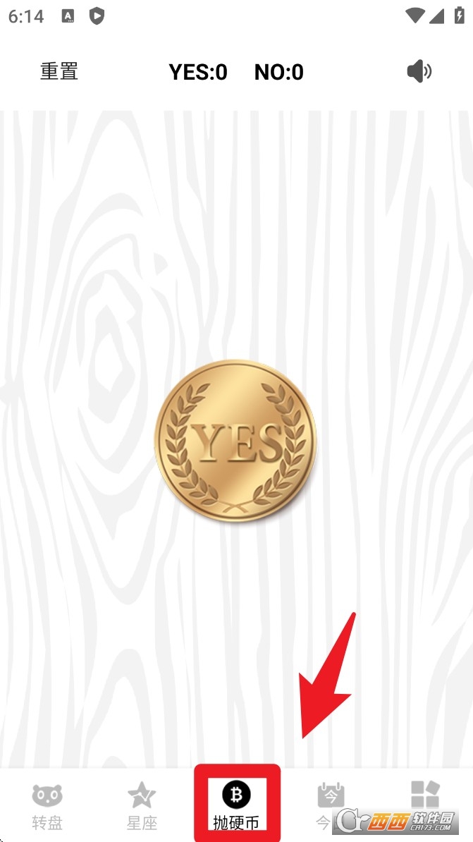 3. 切换至“抛硬币”页面后,点击金色硬币即可随机出现 YES 或 NO,适合快速做出二选一决定。