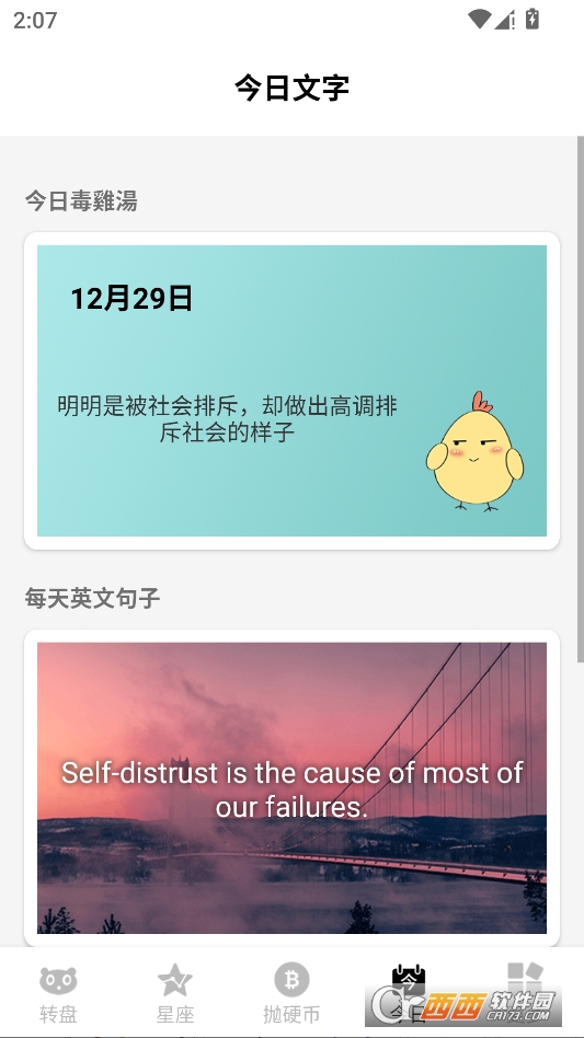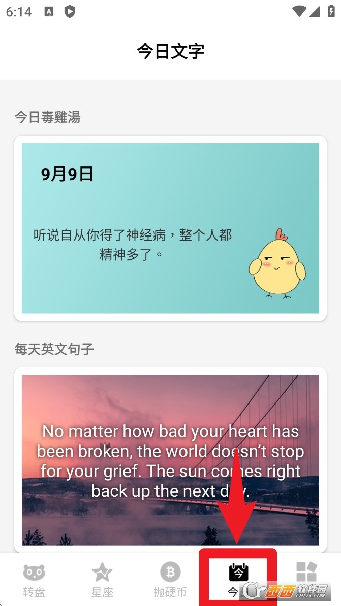 4. 点选底部的“今日”图标,可查看每日毒鸡汤与英文句子,用一句话调节情绪或收获小启发。