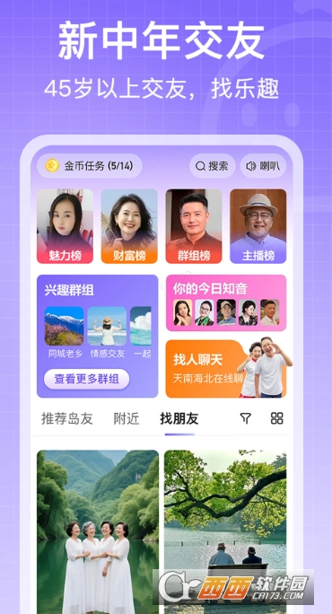 人群定位精准:深耕中老年细分社交市场,用户群体集中在 40 岁以上,年龄、生活状态、兴趣需求同质化高,无论是交友聊天、兴趣结伴还是婚恋匹配,交流无代沟、需求更契合,成功率远高于泛年龄层社交平台。