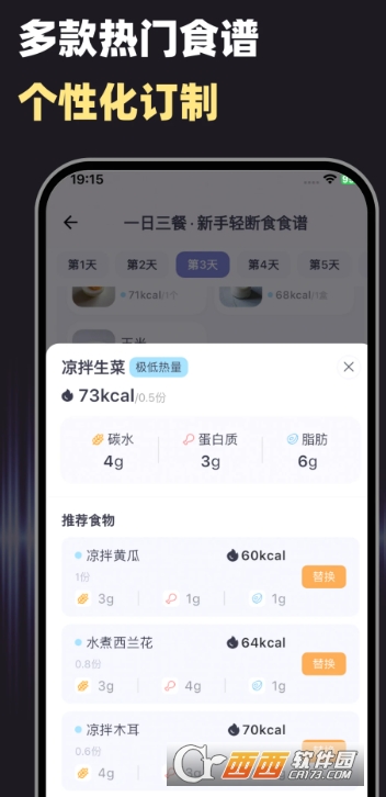 个性化轻断食 + 食谱双方案:提供 12-12 新手体验、16-8 经典断食、20-4 硬核突破等多档位断食计划,搭配明星同款、学生党食堂专属、梨型身材定制等多样化食谱,支持食材一键替换,满足不同减脂阶段、人群的饮食需求。