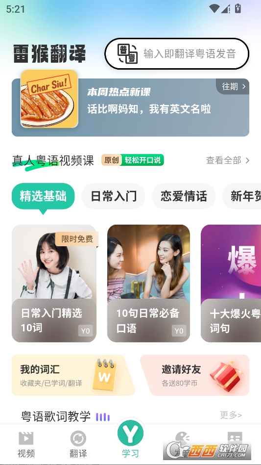 5. 粤语翻译与网红教程,内置实用的粤语翻译功能,支持普通话与粤语互译,翻译结果准确且贴近日常表达。收录百万点击量的网红粤语视频教程,通过趣味讲解的方式传授粤语知识和实用技巧。不管是应急翻译还是趣味学习,都能满足需求,提升学习效率。