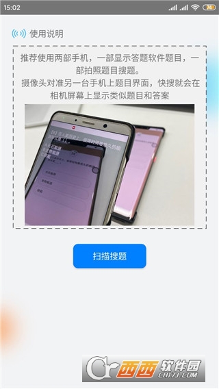 2、点击扫描搜题即可通过手机扫描题目来搜索题目