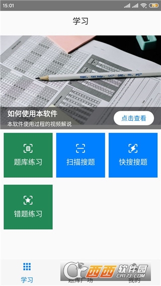 1、在本站下载并安装快搜搜题app官方版,点击学习一栏,可以查看软件各项功能