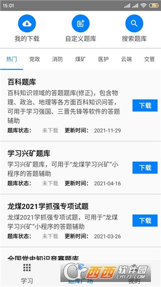3、点击题库广场,可以查看各类型题目题库,可根据自己需求下载