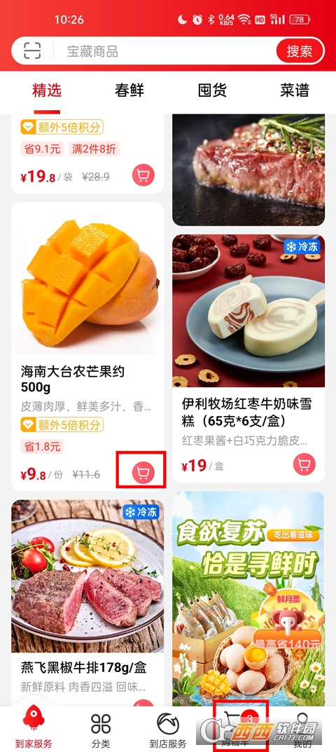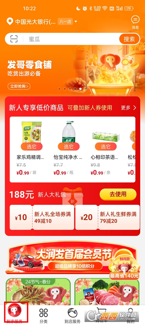 2、点击左下角的到家服务,然后挑选好我们需要购买的商品;