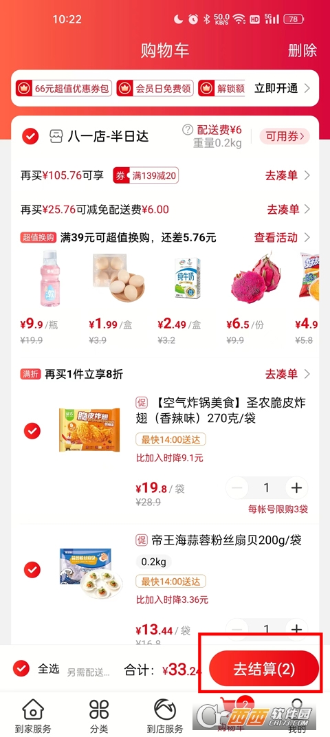 3、挑选好之后进入到购物车进行付款,点击【去结算】;