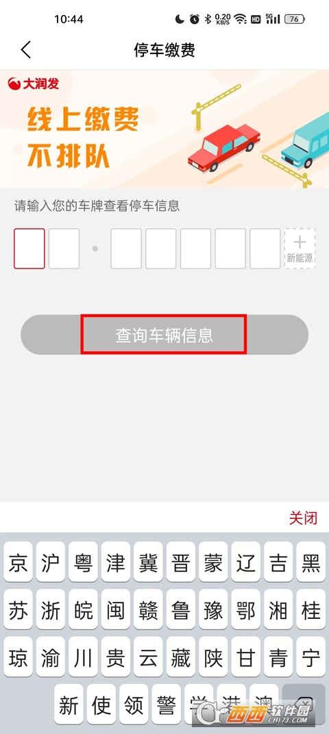 3、进入到停车缴费页面之后,就可以直接输入车牌信息,然后点击查询车辆信息;