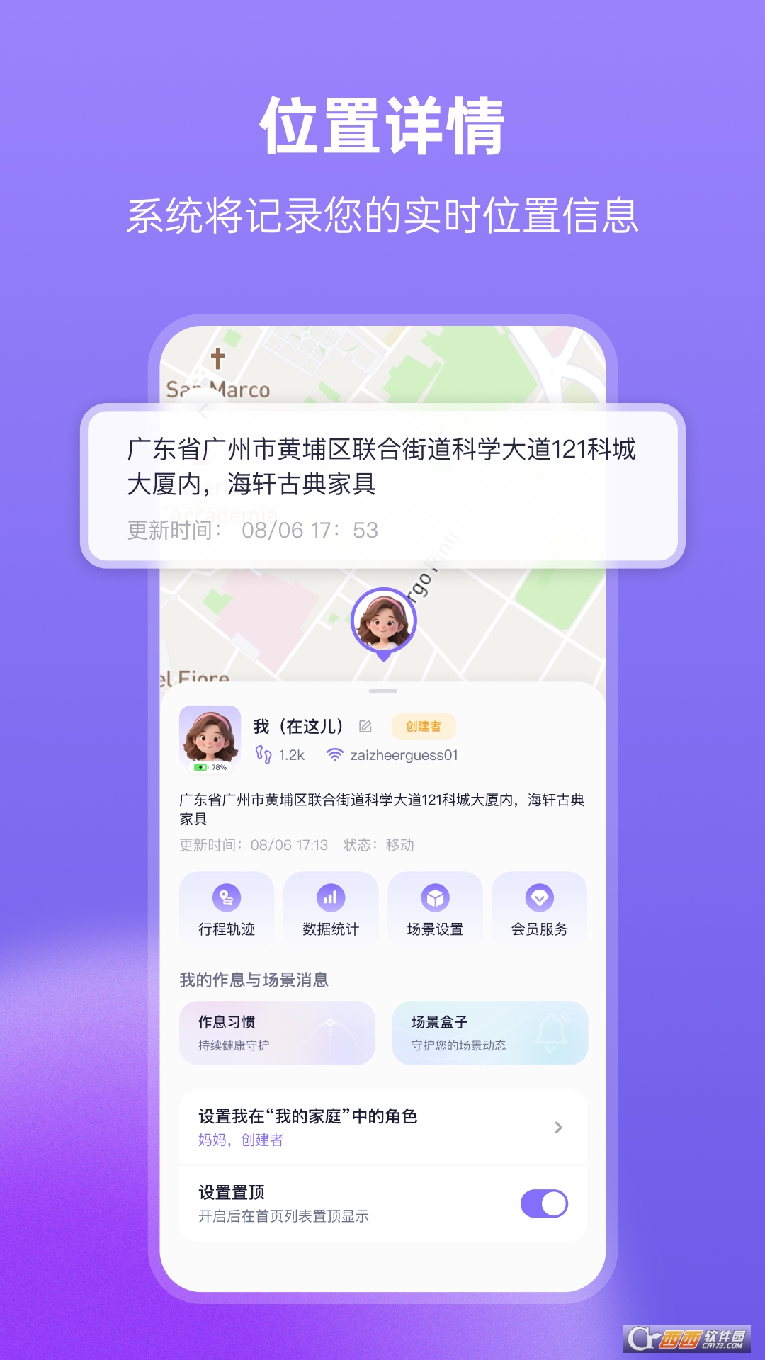 “在这儿”是一款专注于家庭安全守护的实用应用,核心目标是帮用户全方位保障亲友和资产的安全。通过手机或智能设备的定位与感知控制技术,打破空间限制,让用户随时随地都能轻松掌握关心之人、关注之物的安全状态,给家庭安全多一份可靠保障,快来西西下载吧。