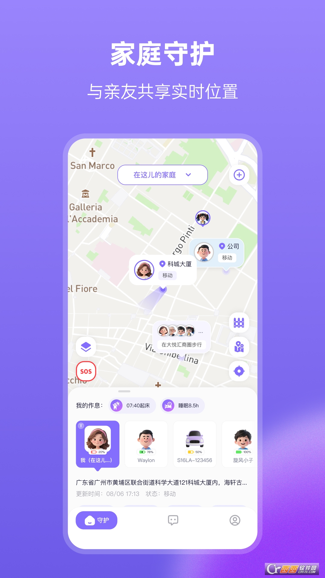 2. 共享位置功能,家人互动更安心。支持创建家庭位置共享群,邀请家人加入后,群内成员可互相查看实时位置。外出游玩时能掌握家人位置,避免走散;家人独自外出时,通过位置共享能让彼此放心,尤其适合有老人和小孩的家庭使用。
