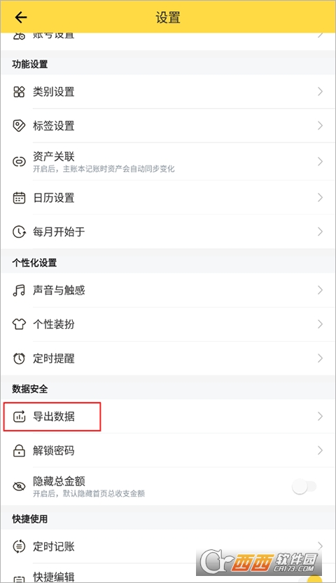 支持数据导出功能。进入我的页面,找到设置选项。在设置中点击导出数据,可自定义选择导出账单的起止时间。导出的文件为Excel格式,方便用户整理和备份财务数据,满足对账或存档需求。