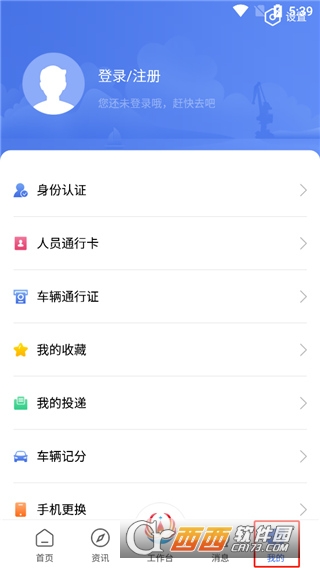 5、点击我的,里面可以看到自己的通行卡、车辆记分和证件以及收藏等个人信息。