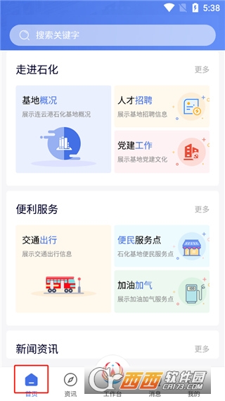 1、打开在本站下载的软件,点击首页可以看到一些关于石化的基本信息,以及便利服务;