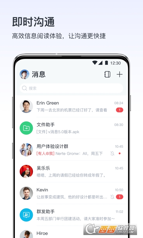 功能一体化整合,彻底告别多软件切换困扰。传统办公往往需要同时使用聊天软件、审批系统、邮箱、日程工具等多个应用,信息散落在不同平台,查找与协同效率低下。v消息将这些核心功能全部整合,所有办公操作在一个平台完成,大幅减少切换成本,提升办公连贯性。