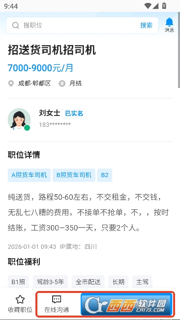 4,点击感兴趣的岗位就能在线沟通电话咨询