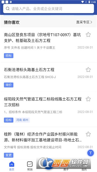 3、点击首页,这里有很多功能,如:市场分析、直采专区、项目预测等等;