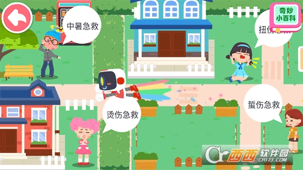 1、进入宝宝巴士救护手册游戏后,在急救选择界面选择并点击你想了解的急救知识;