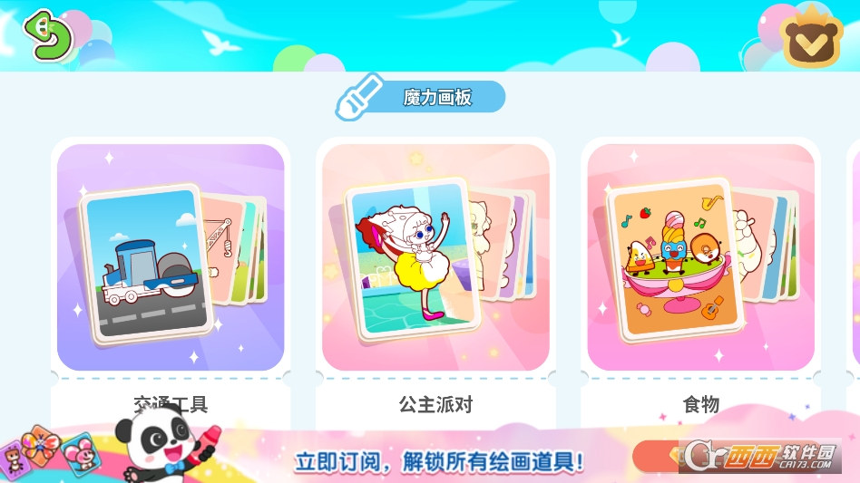 整体风格充满童趣,界面色彩鲜艳柔和,搭配可爱的卡通元素和轻快的背景音乐,能快速吸引宝宝的注意力。操作设计完全适配低龄宝宝的认知和动手能力,所有绘画功能都简单易懂,宝宝只需用小手轻轻点击、拖拽就能完成创作,轻松享受绘画的乐趣。