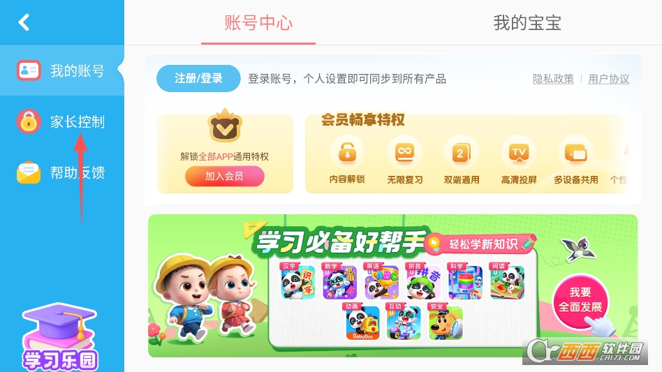进入软件之后来到主界面,点击右上角的家长中心