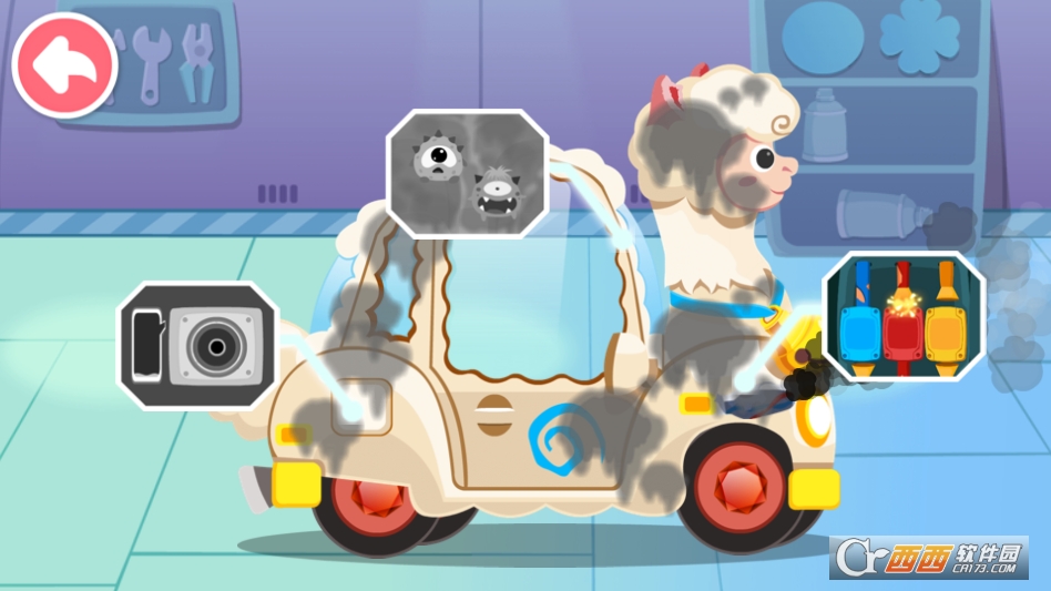 3. 专业修理工具认知,提升动手能力。内置扳手、螺丝刀、千斤顶、打气泵、扳手等数十种专业修车工具,每种工具都有清晰的卡通造型和语音命名。宝宝需要根据故障类型选择正确的工具,通过点击、拖拽等操作完成修理,在这个过程中熟悉工具功能,提升动手协调能力。