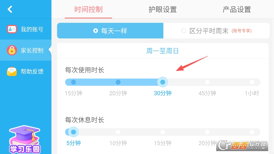 来到家长中心之后,点击家长控制栏目