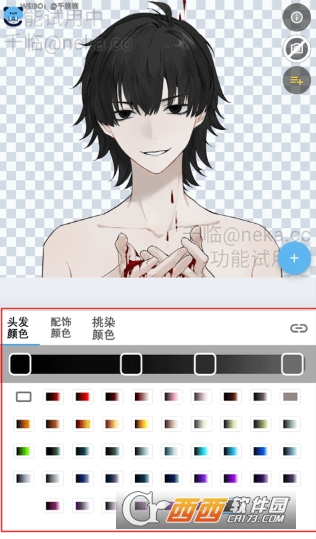 4、并且等你再次打开调色板,你会看到可以对头发、配饰、挑染进行调色了。