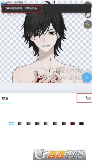3、这时页面下方就可以对肤色的颜色进行自定义调色了。如果想单独进行调色,就可以点击肤色右边的链接功能图标,上方就会有文字提示你可以单独调色。