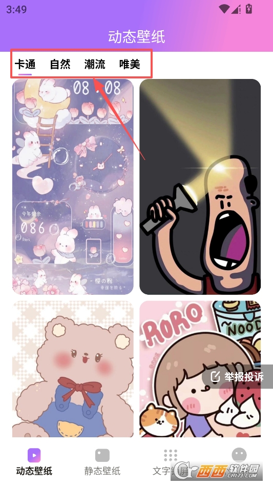 进入软件之后我们可以在主页选择不同类型的壁纸版块