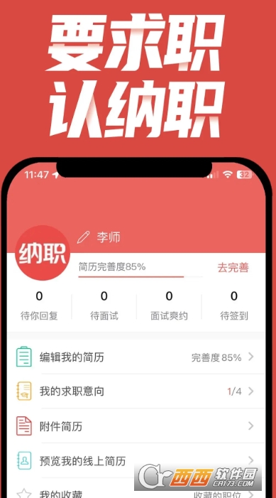 纳职app官方客户端是一款专业的招聘求职软件,与全国范围内的用人单位展开深度合作,提供海量招聘岗位,助力用户快速入职。不仅能够根据用户的定位与求职意向进行个性化推荐,还能筛选岗位类型 ,城区 ,福利,薪酬,学历,经验等要求,点击感兴趣的岗位就能投递简历在线沟通,还能获取最新的招聘考试信息,非常方便 。