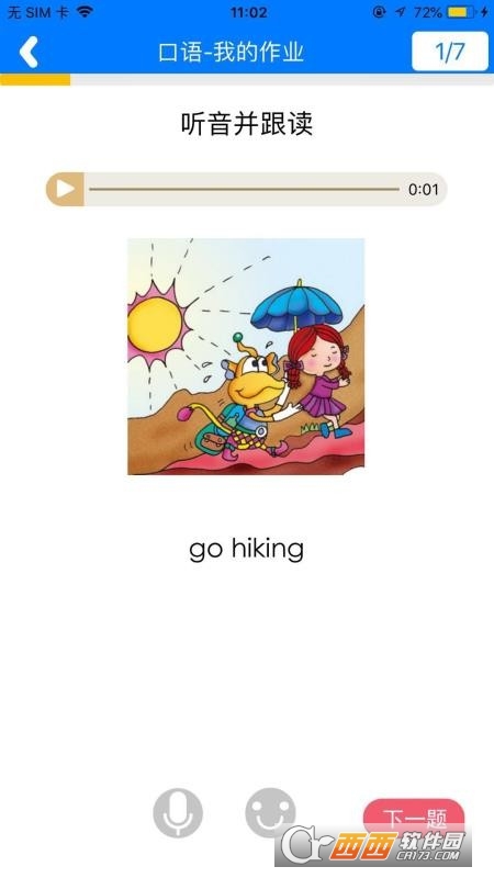 3. 多元趣味练习,激发学习主动性。采用音频、图像、动画、文字等多种元素组合的练习形式,通过耳听、口说、眼看、手动的多感官结合模式,让枯燥的英语练习变得生动有趣。涵盖八大主题型衍生的60个子题型,由浅入深循序渐进,引导孩子逐步掌握学习内容。