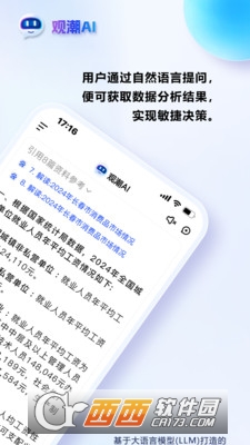 观潮ai软件下载2026最新版并非传统BI工具的简单移动化移植,而是基于生成式AI与大语言模型(LLM) 原生打造的对话式、探索式、前瞻性智能决策平台。它将复杂的商业智能分析从专业分析师手中的“重型武器”,转化为每位管理者、运营者、销售员口袋中的“智能参谋”,真正实现了“数据随想,洞见随行”。