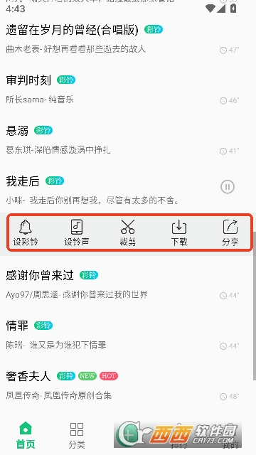 4,点击感兴趣的铃声就能一键设置与下载分享