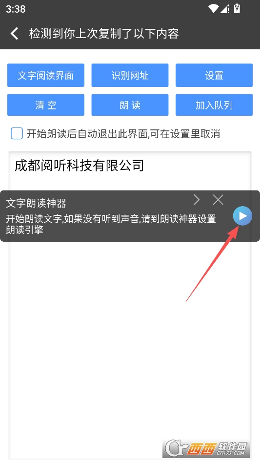 即可直接检测出来内容,然后点击一下播放键即可开始朗读