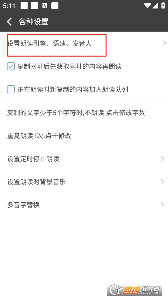 2、点击设置朗读引擎、语速、发音人;