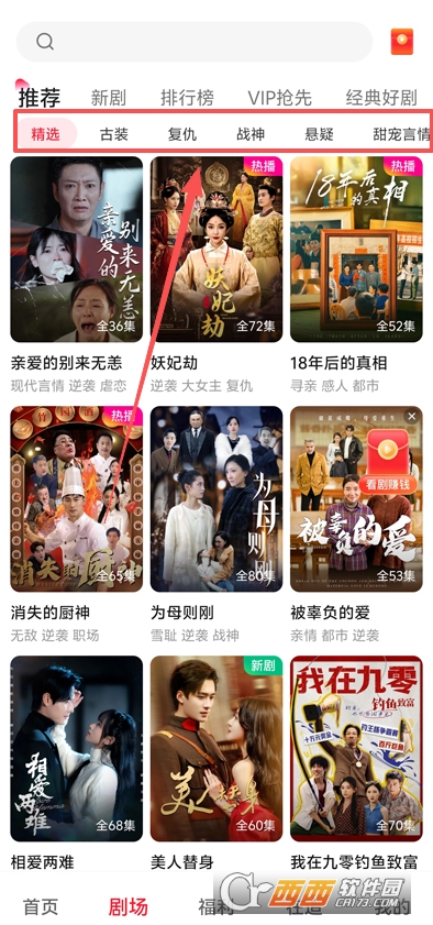 2、首页可以选择不同的短剧类型目录