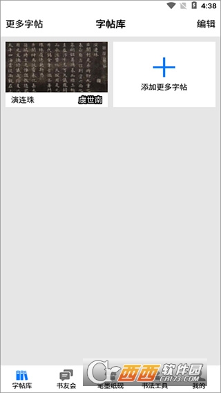 2、首页,在“字帖库”界面点击添加更多字帖到软件最新的字帖;