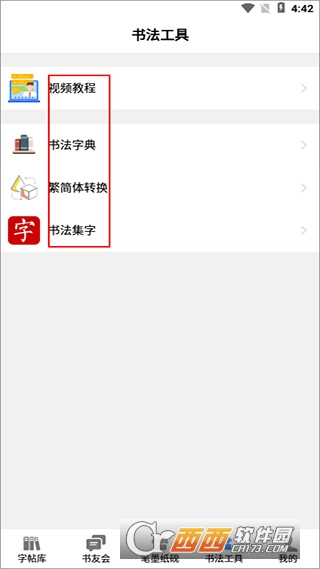 5、软件的书法工具中可以看书法的视频教程,还有书法字典可以查询;