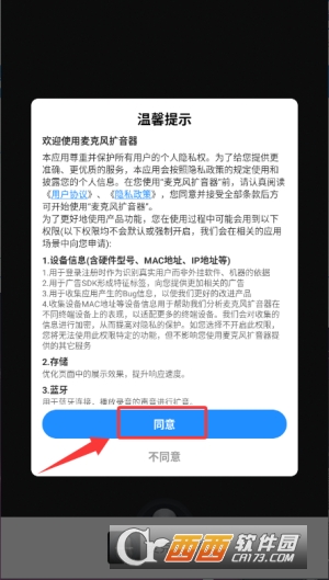 1、启动麦克风扩音器应用,确认温馨提示后进入主界面。